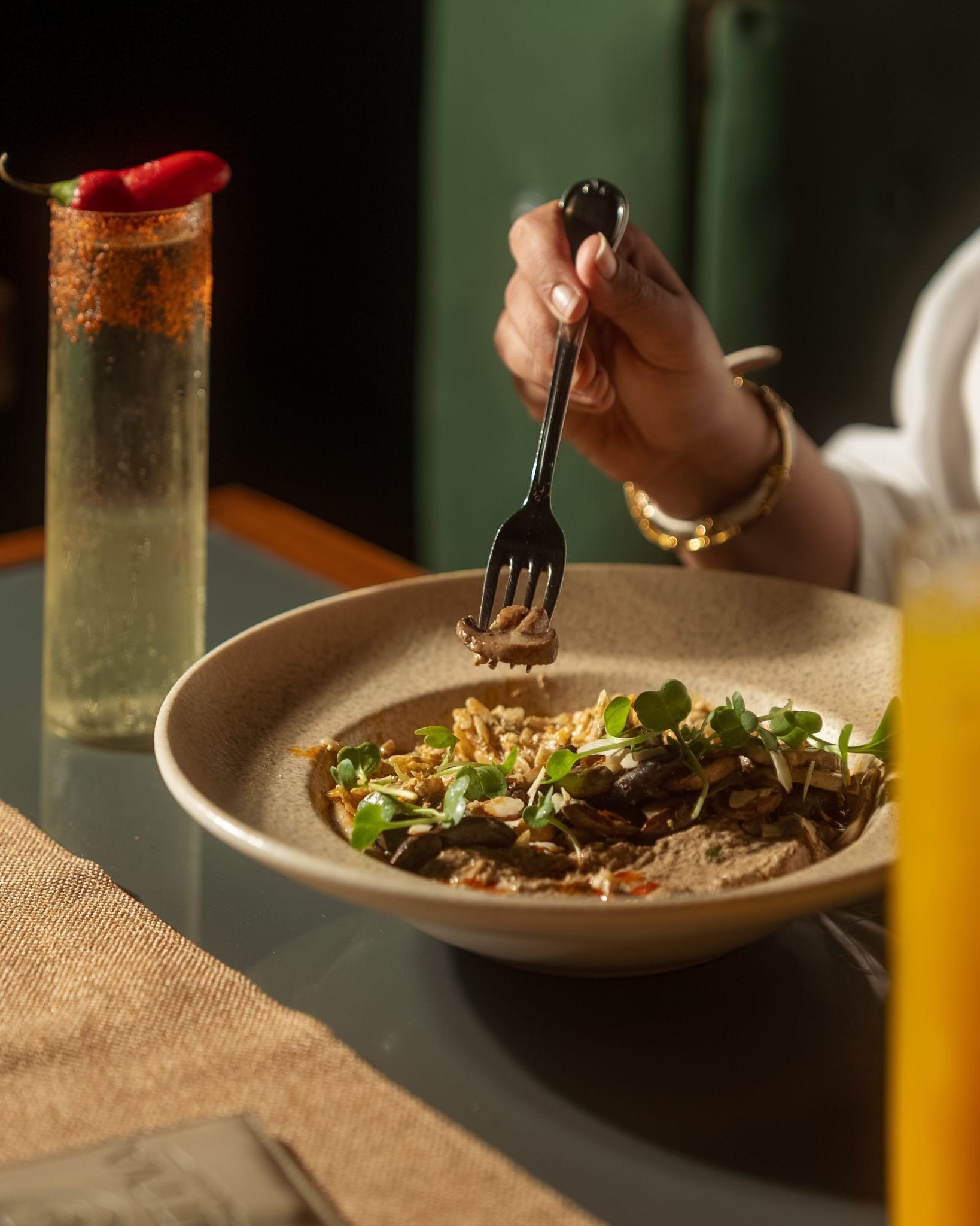 At the heart of the experience lies a menu that celebrates Indian flavours reimagined through European techniques and formats, built around seasonal produce like mango, kokum, papaya, and pineapple. The dishes strike a careful balance between richness and acidity, offering a menu that feels both familiar and progressive, with creations such as Seared Chicken with Konkani Thecha and Spiced Doodhi and Chickpea Chaat with Fenugreek Cream and Fennel. The bar program takes centre stage, emerging as the defining highlight, with cocktails crafted around freshness, light textures, and layered acidity using tamarind, mango, kokum, citrus, and herbs. Signature serves like The Tamarind Veranda, Mango Silk, Umami Garden, Coastal Heat, and Golden Hour reflect a mix of approachable and experimental profiles, while the zero-proof selection, including Citrus Heat and Mango Current, ensures a balanced and refreshing drinking experience throughout.