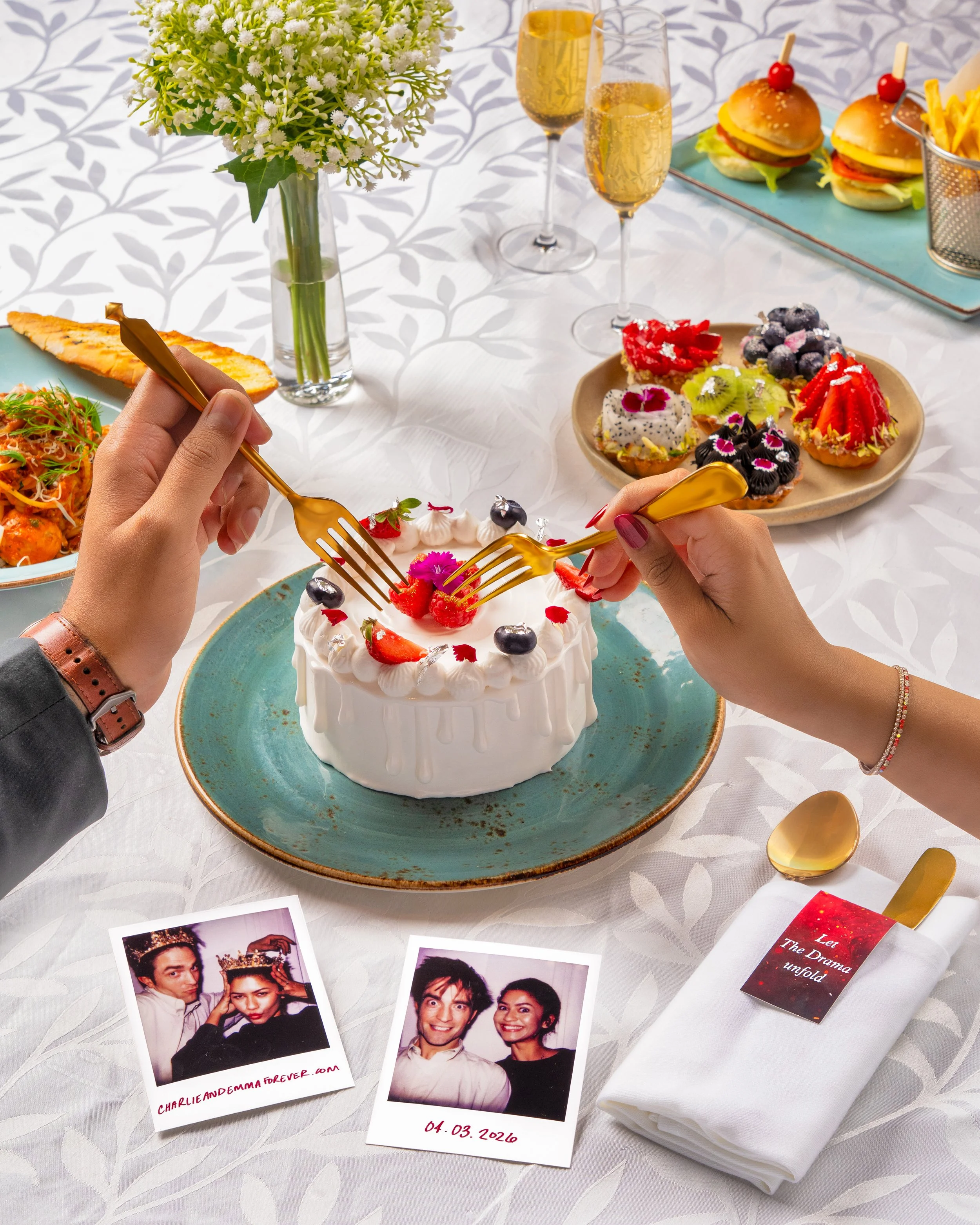 Inspired by this rollercoaster love story, the menu unfolds like a romantic narrative, beginning with fresh salads such as The Perfect Pair Cobb and The Classic Chemistry Caesar, followed by tempting starters including Wrapped in Secrets (Chicken in Blankets) and The Golden Temptation (Salmon Beignets). The story continues with hearty mains like The Comfort Commitment (Lamb Meatloaf) and Layers of Love (Rigatoni Pie), alongside live stations serving favourites like Hooked on You Fish & Chips in cones and The Perfect Match sliders. End the experience with indulgent desserts such as New York Love Story Cheesecake, The Classic Romance Apple Pie, and Bittersweet Affair Brownie with Ice Cream, perfectly complemented by refreshing Sangria and Bellini.